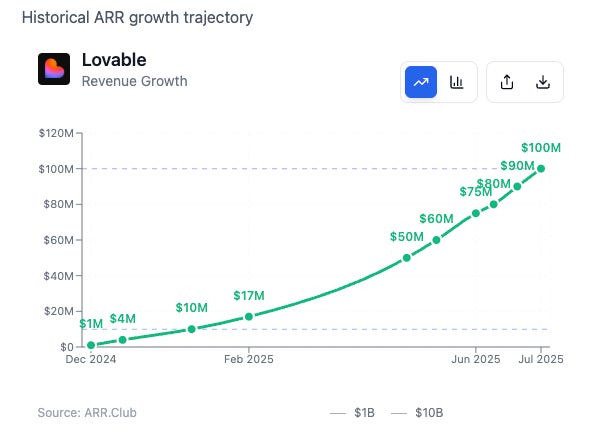 After Replit hit $100M ARR, Lovable has just shattered records—hitting $100 million ARR in just eight months, outpacing OpenAI, Cursor, Wiz, and every other software company in history.