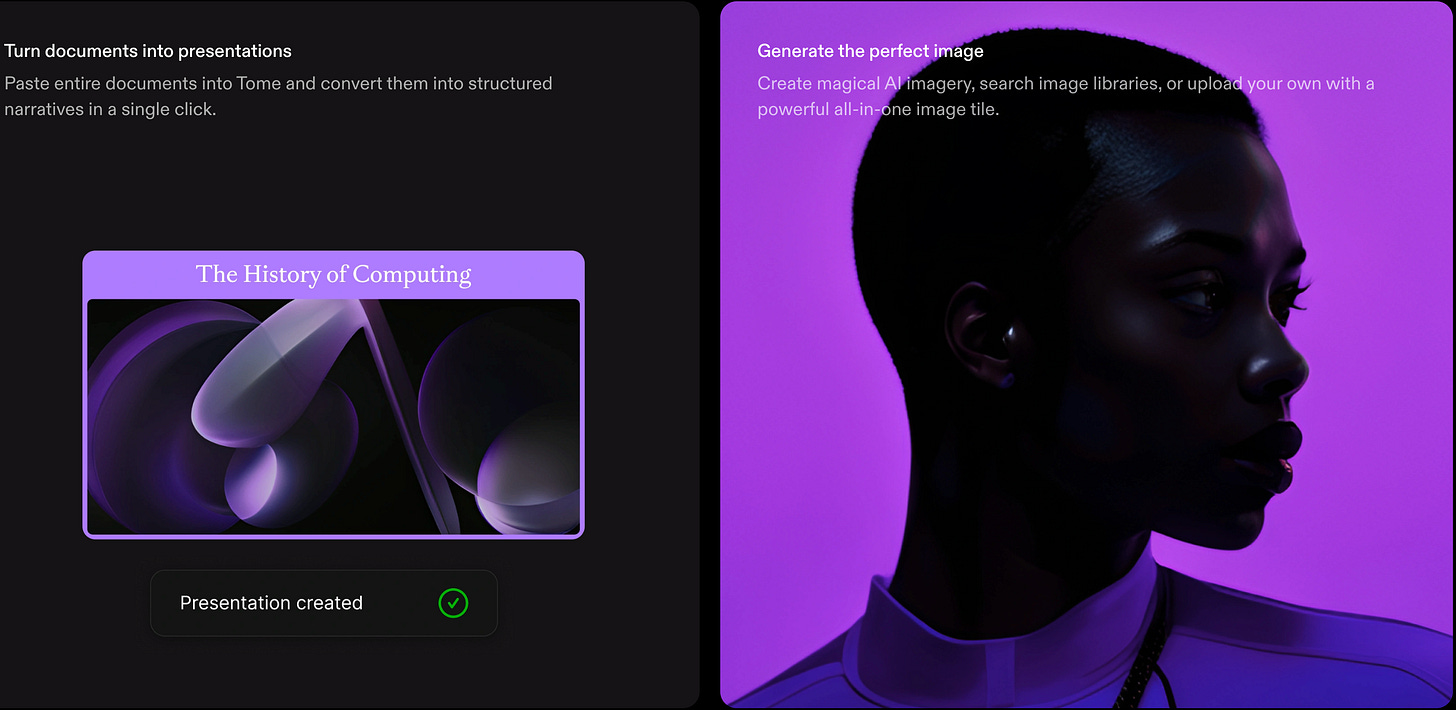 Because of its sleek design, Tome attracted Gen Z users, artists, freelancers, designers, and students—making it more of a creative tool rather than a productivity tool for work.